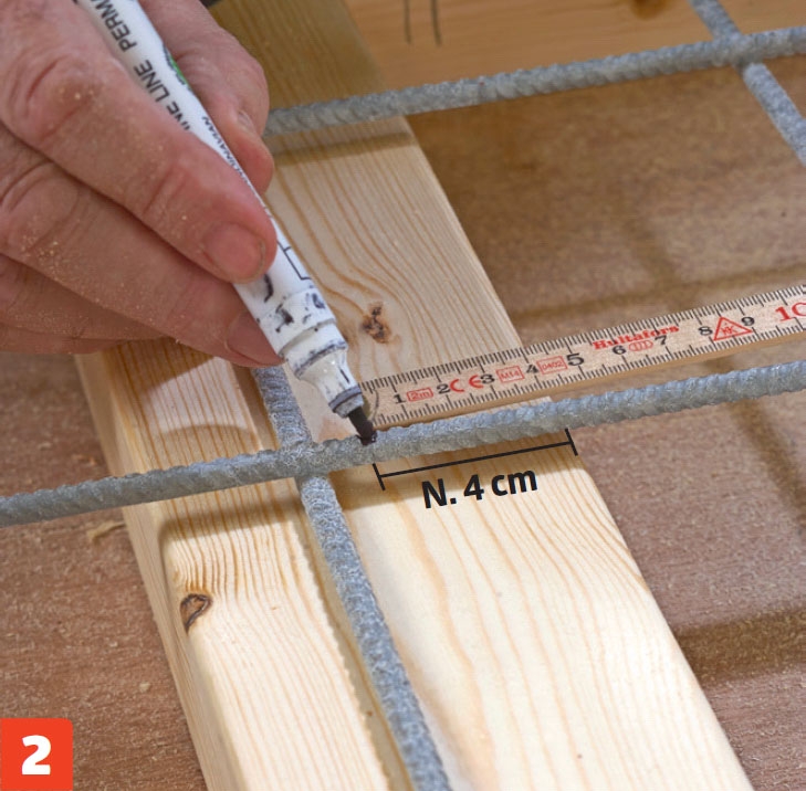 Vi lægger nettet oven på rammen og streger trådenes placering op direkte på rammen. Vi samler den midlertidigt, men bruger ikke skruer og lim endnu.
