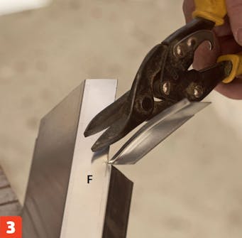 Snegleværnet (F) tilpasses ved hjørnestolperne, så sneglene ikke kan snyde sig op i bedet ved at benytte stolpens sider. De bare 1 mm tykke alu-profiler er nemme at klippe til med en pladesaks.