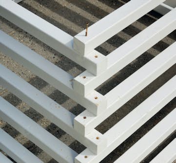 Start med at afkorte alle lægter til opbygningen af højbedet efter målene i materialelisten. Mal listerne et par gange med træbeskyttelse. Det går hurtigst med en malerrulle.