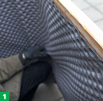 Grundmurspladen monteres med søm. Den kaldes også platonplade og beskytter træet mod fugten og jorden i højbedet.
