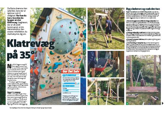 Nøglen til projektet er to nedstøbte lange stolper i 20 x 20 cm tømmer, der holder klatrevæggen oppe.