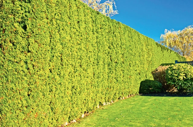 En stedsegrøn hæk klippes kun en gang om året. Helst i august, så nye skud kan vokse til, inden der kommer frost.