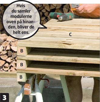 Det er en god idé først at bygge et modul, som andre moduler kan samles ovenpå. Det sikrer, at de bliver ens.