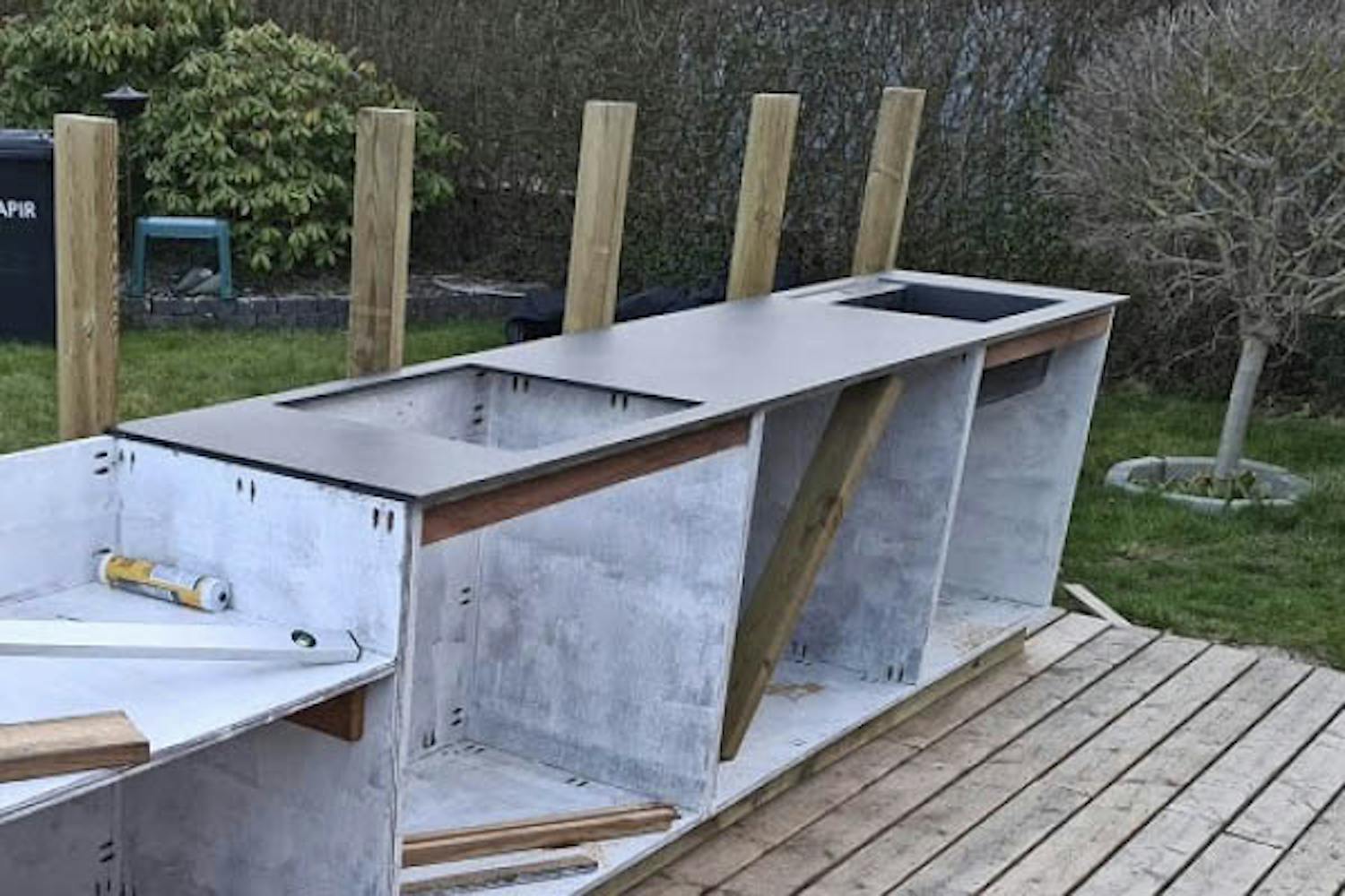 Resultatet er et holdbart, pænt og billigere alternativ til fx solid granit eller marmor. Komposit kræver relativt lidt vedligehold og kan tåle vind og vejr bedre end eksempelvis træ, men kan ligesom natursten som marmor være sårbart over for syre. Hvis du køber en kompositplade, kan den med fordel bestilles med indbygget vask og udskæringer til grill og kogeplade m.m.