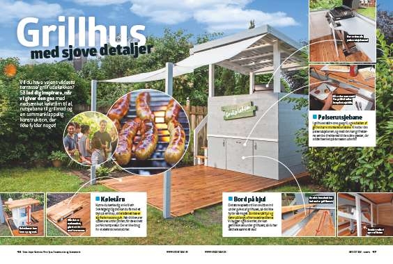 Grill og slidske skal stå side om side. Der skal selvfølgelig være plads til en grill i et grillhus. Gasgrillen findes i 1.000 forskellige former, farver og størrelser, og det vigtigste er selvfølgelig, at der er god plads. Ved siden af grillen ser du pølserutsjebanen.