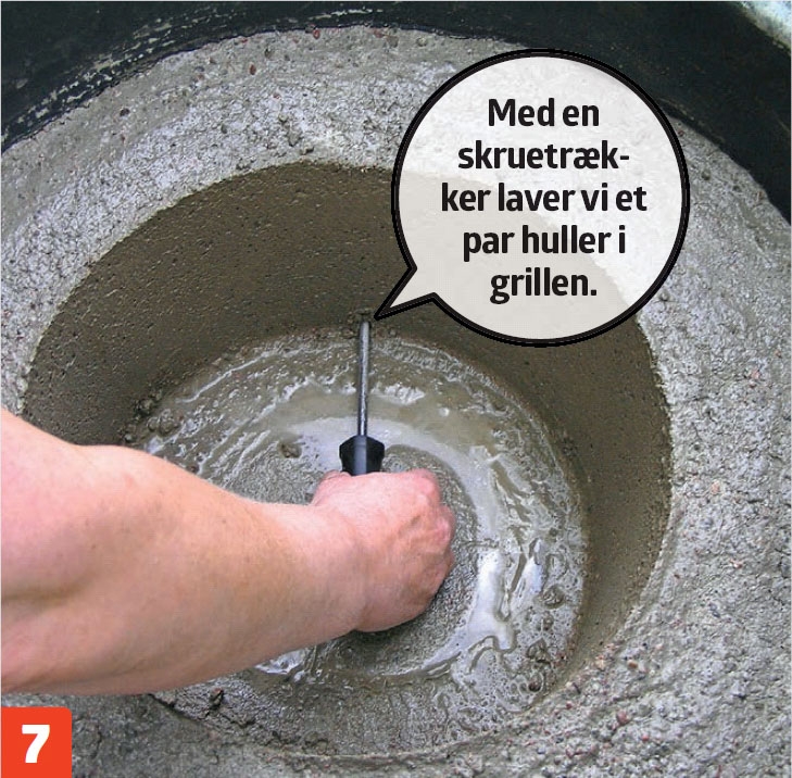 Når betonen er ved at hærde, fjernes den mindste balje, da den vil være umulig at få væk, når betonen er tør.