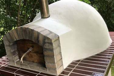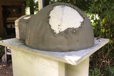 Denne ovn har en skal af perlit, som efterfølgende er påført et tykt lag puds, der til sidst pyntes med fliser.