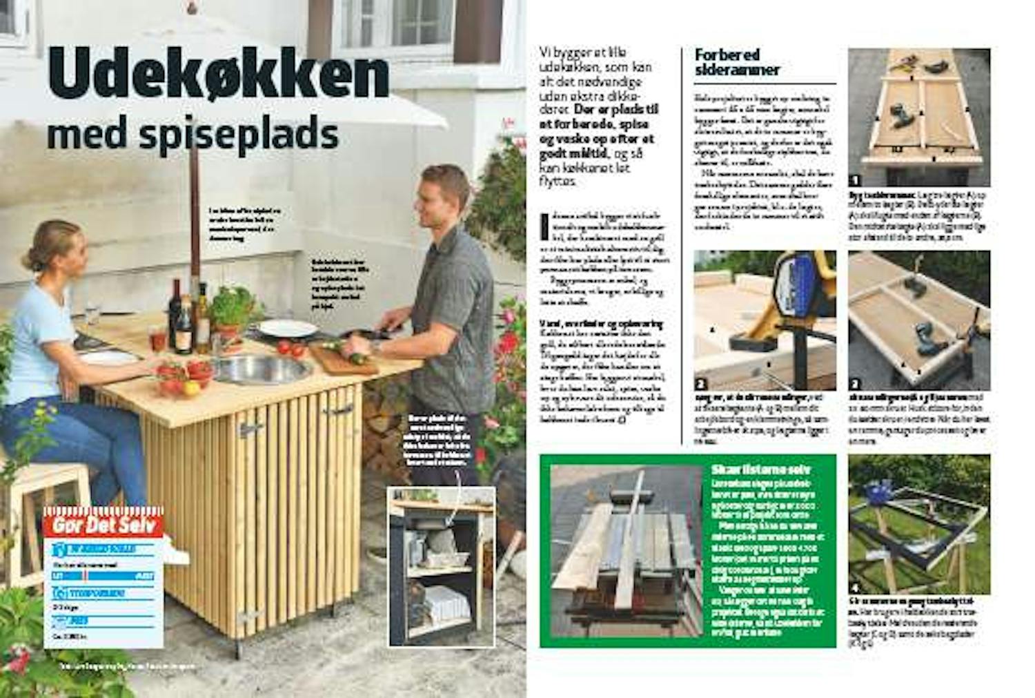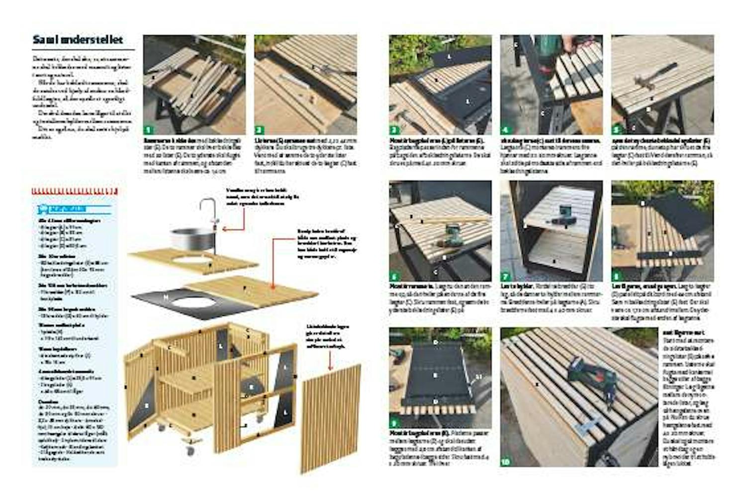 Derefter sætter du bordpladen fast på understellet, som begynder at ligne et fuldendt udekøkken.