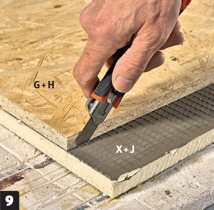 Lav en let kerne til formene. Skær den store og den lille OSB-kerne (G og H) ud. Skær derefter den store og den lille vådrumspladekerne (X og J) ud.