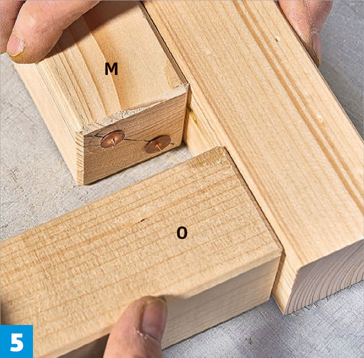 Lav plads til indslagsmøtrikker. Du skal lave en 5 mm fordybning i bunden af alle benene (M og N) med et 25 mm forstnereller spadebor.