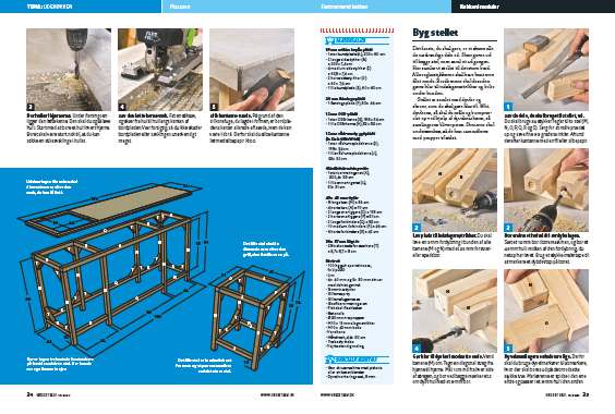 Stellet er samlet med dyvler og skruer, som du skal gøre klar til. Mht. dyvlerne, så skal du måle og bore præcist op ved hjælp af dyvelmarkører, så samlingerne bliver pæne. Skruerne skal undersænkes, så de kan camoufleres med propper til sidst.