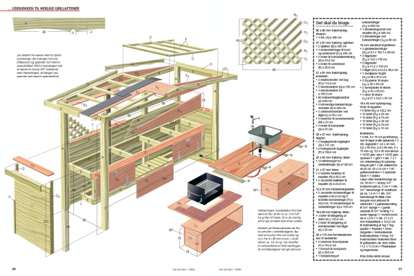 Saml understøtningen til bordpladerne af bjælkerne (D) og (C) - tag højde for målene på vask og grill. Skru brædderne til bordpladen sammen med tværstiverne (N) med 5,0 x 50 mm skruer. Sav ud til vasken. Udsav grillhullet i pladen (H1) med 3 cm luft omkring.