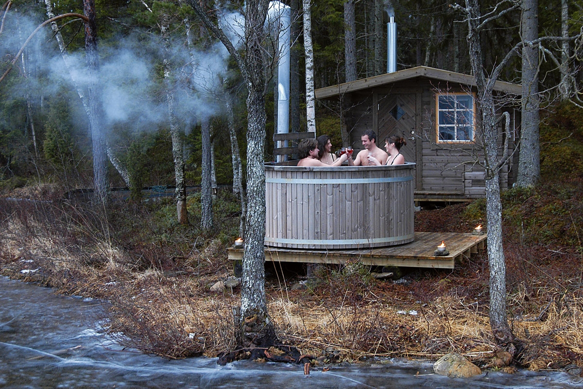 Vildmarksbade bliver oftest bygget i træ. På grund af sin tunge vægt kræver det et godt og solidt underlag, og du skal derfor nøje overveje placeringen.
