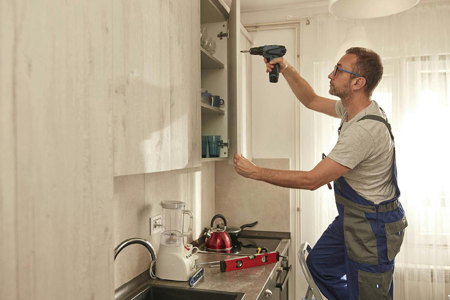 En hængselvrider er også en mulighed. Sæt vrideren på hængslet, og træk det lidt tilbage, så døren igen sidder lige.