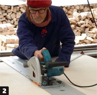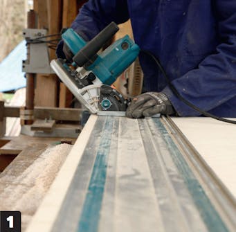 Styreskinnen er en stor hjælp. Her bruger vi en dyksav, men mange rundsave kan også køre på en skinne, som øger præcisionen betydeligt. Har du en stor bordrundsav, er det oplagt at bruge den.