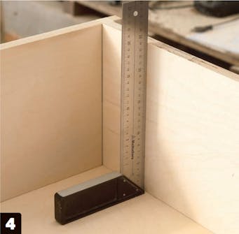 Brug blyantstregerne til at samle efter. Når stregerne mødes, gør de fræsede spor til dyvlerne det også. Du kan evt. holde hjørnerne samlet med malertape, hvis det er svært at styre alle pladerne.