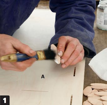 Dyvlerne pensles med lim på knap halvdelen af fladen. Limen vil få dyvlen til at svulme op, efterhånden som den tørrer.