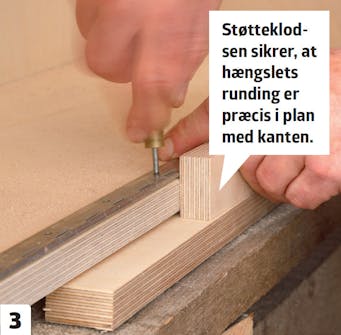 På de to sider (C) skal der fræses 27 mm (1 1/2 pladetykkelse) fra pladens kant - hjælpepladerne fastgøres langs opmærkningen.