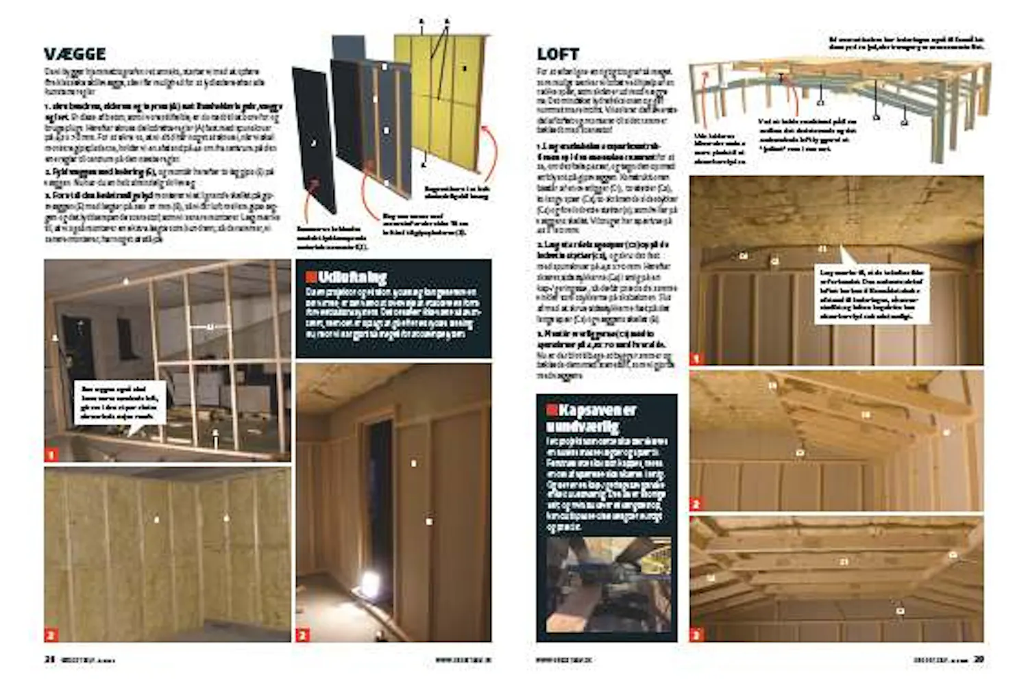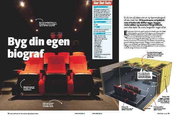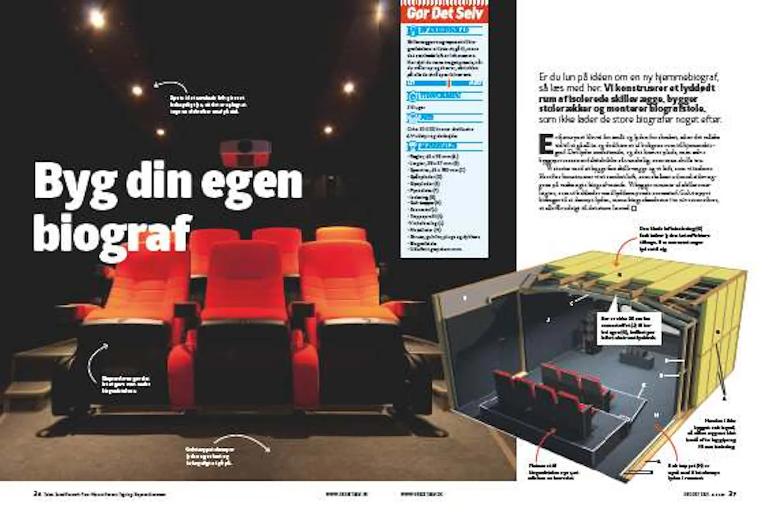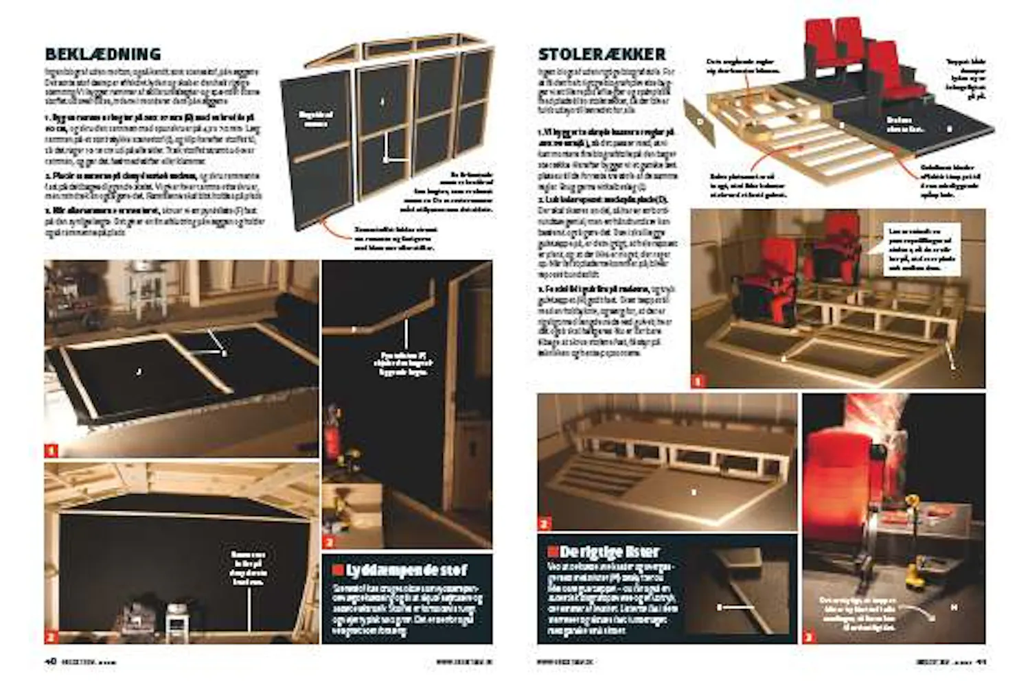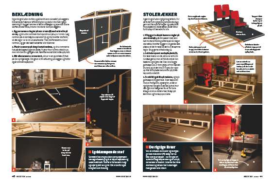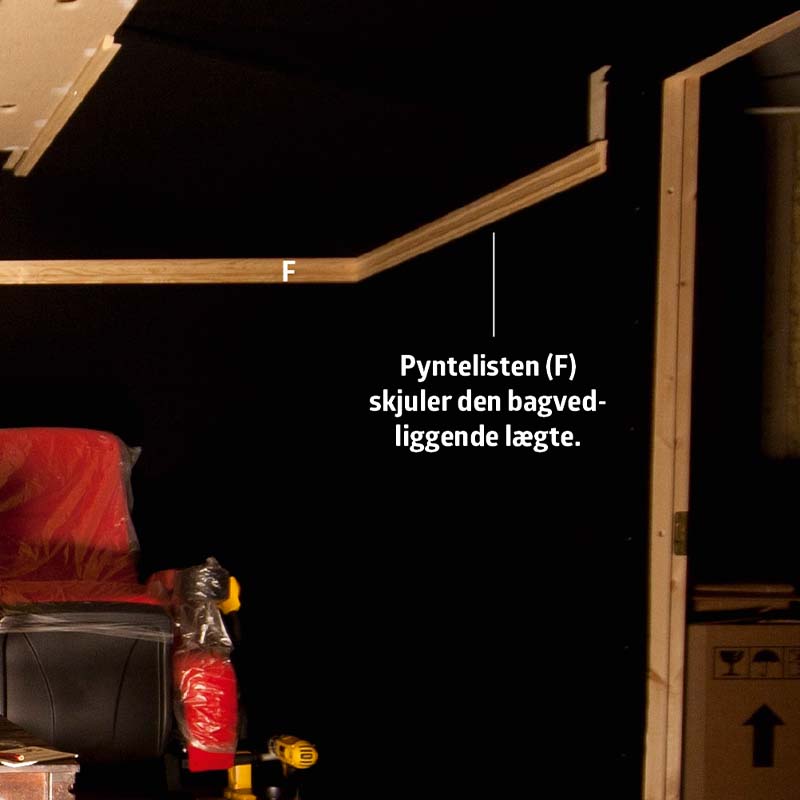 Skillevæggene og reposet til biografstolene er lette at gå til, mens det sænkede loft er lidt sværere. Her skal du være meget præcis, når du måler op og skærer, så vinklen på alle de skrå spær bliver ens.