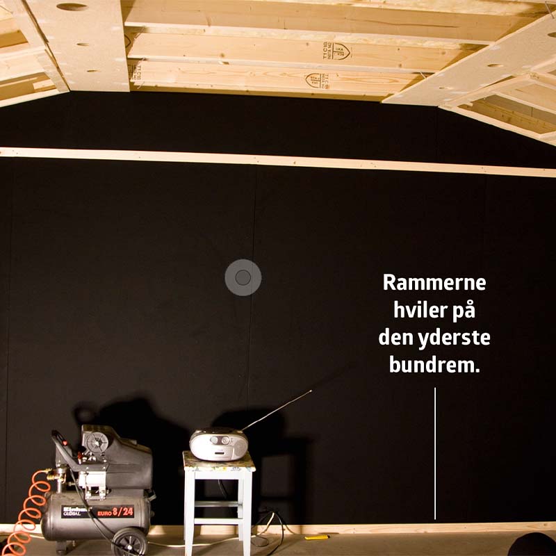 Placér rammerne på den yderste bundrem, og skru rammerne fast på det bagvedliggende skelet. Vi giver hver ramme otte skruer, men mindre kan også gøre det. Rammerne skal blot holdes på plads.