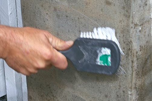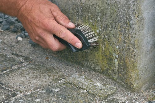 1. Løs algevækst fjernes med en stiv skurebørste. Vær forsigtig, så du ikke ødelægger puds eller maling.