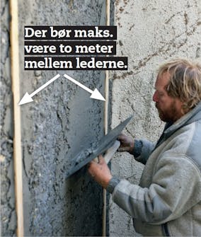 Træk andet lag på. Pudsen skal fordeles over hele området imellem de to ledere, indtil pudslaget har cirka samme højde som lederne.