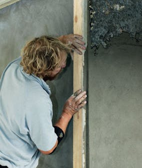 Træk pudsen af. Før brættet langs lederne i sik-sakbevægelser. Stop, når brættet bliver tungt af overskydende mørtel.