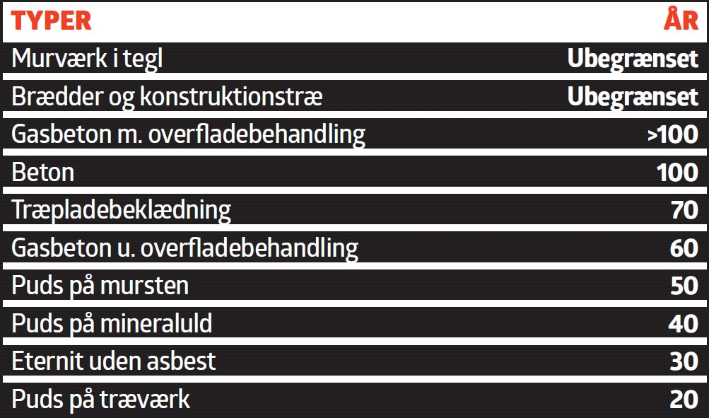 Bygningsdelenes forventede levetider