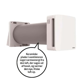 Når ventilatoren suger brugt luft ud, passerer det en keramisk plade, der varmes op af luftstrømmen. Når der pustes frisk luft ind, varmes det op af den samme keramiske komponent.
