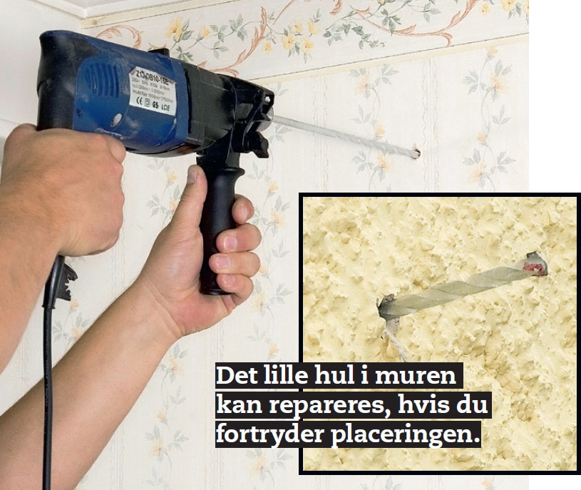 Sørg for, at der ikke er hindringer, fx kabler inde i væggen. Så er projektet overkommeligt for de fleste.