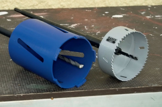 Du skal bruge en hulsav i samme diameter som den ventil, der skal sættes i. En hulsav til mursten eller beton kan du købe eller leje. Men start med et tyndt søgebor, inden du borer det endelige hul.