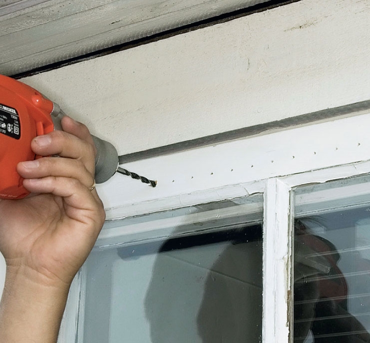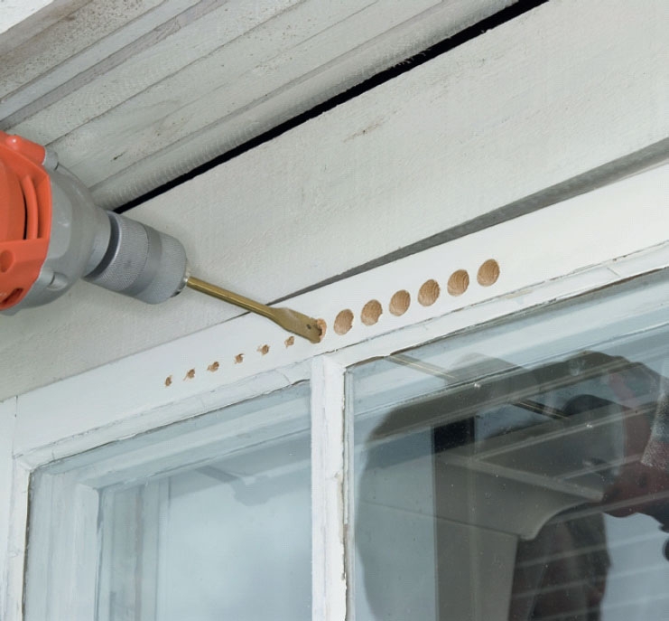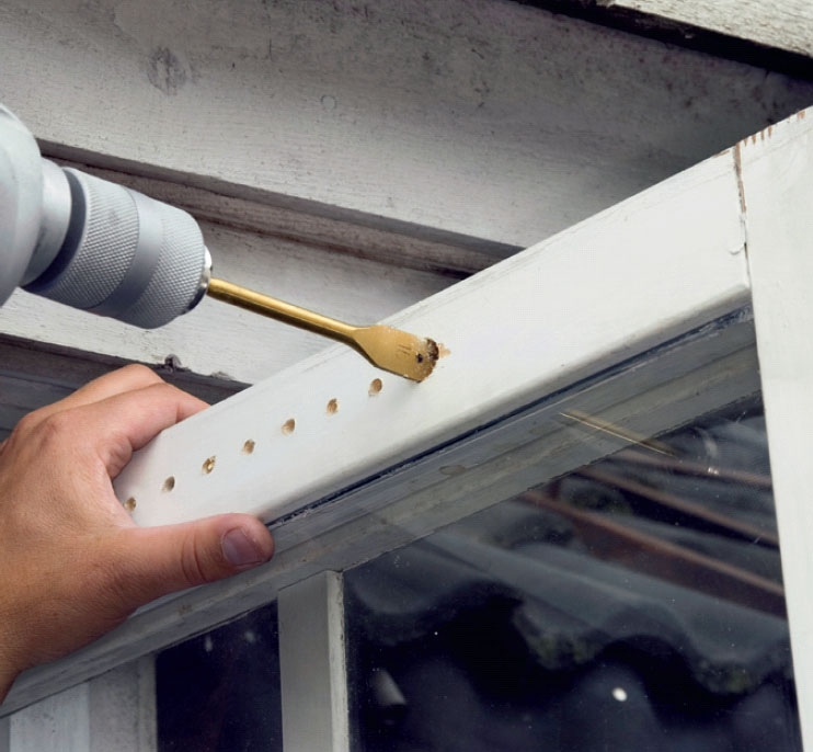 Hvis rammerne består af to dele, er det en god idé at sætte en tynd tætningsliste rundt om de huller, du borer. Så mindsker du risikoen for kondens imellem vinduesglassene.