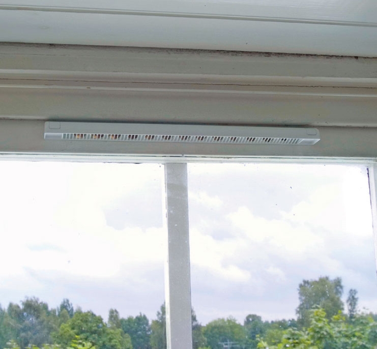 Det er ikke altid praktisk muligt at sætte en ventil i ydermuren eller ned gennem taget. En anden løsning er ventiler placeret i vinduer eller døre. Det er en nem og diskret løsning.