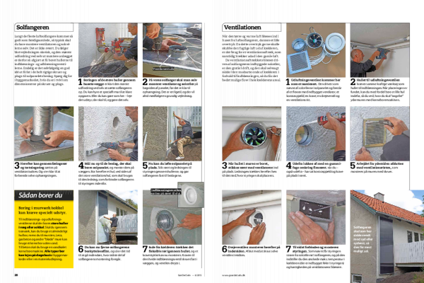 Boringen af de store huller gennem husets vægge er klart den største udfordring ved selv at sætte solfangeren op. Du kan hyre et specialfirma til at klare opgaven. Eller du kan gøre som her - leje det udstyr, der skal til, og gøre det selv.
