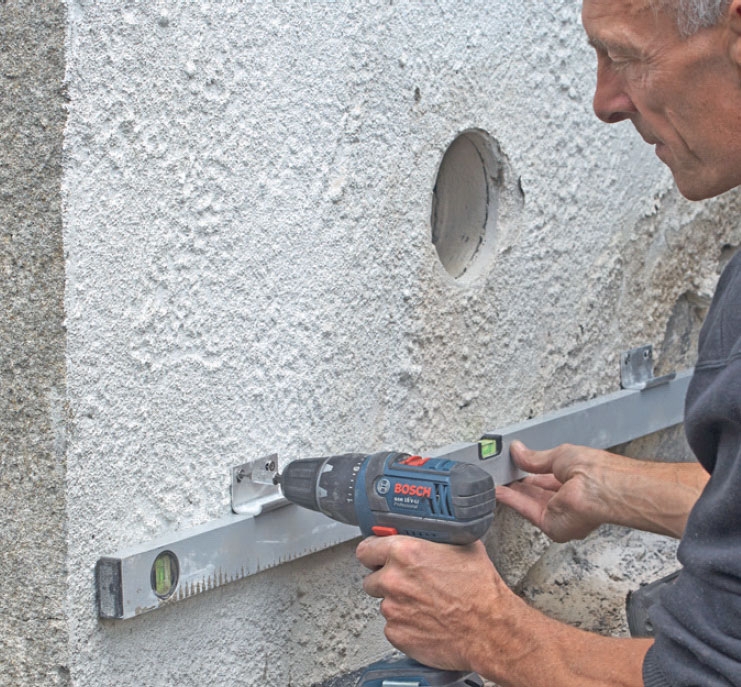 Det kan godt være ret besværligt at bore gennem murværket eller soklen, men selve installationen er let.