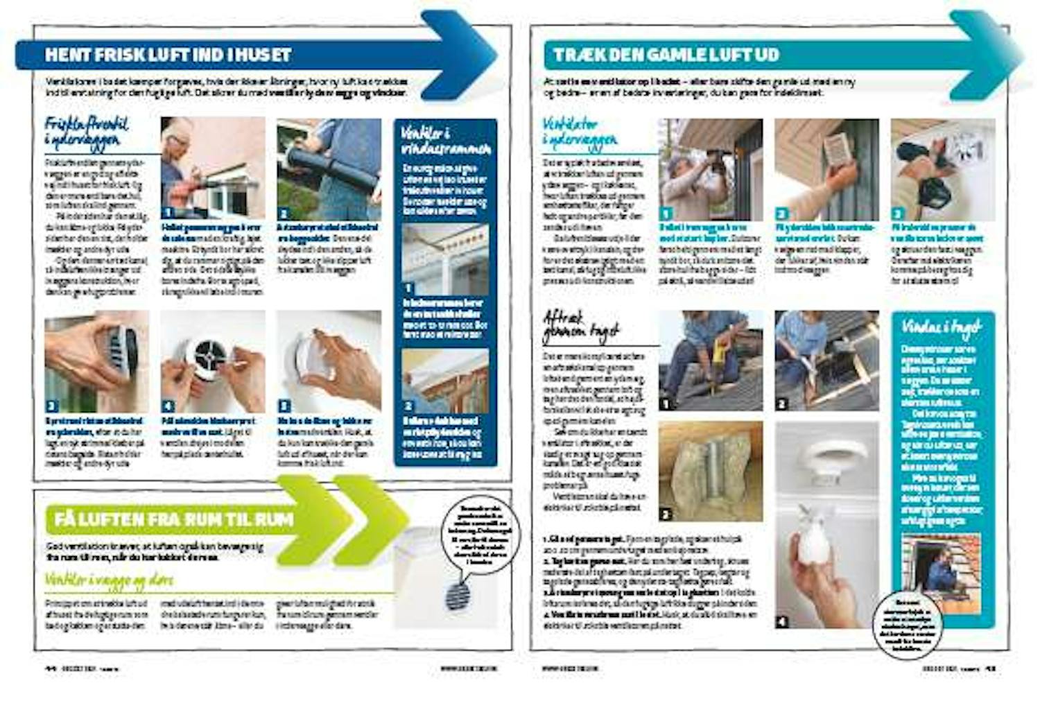 Du sikrer god ventilation og sund, tør luft i huset gennem to teknikker, der supplerer hinanden: Husets indbyggede ventilation, som mere eller mindre automatisk skifter luften i huset gennem hele døgnet, og korte, effektive udluftninger, som du selv sætter gang i 3-4 gange i døgnet.