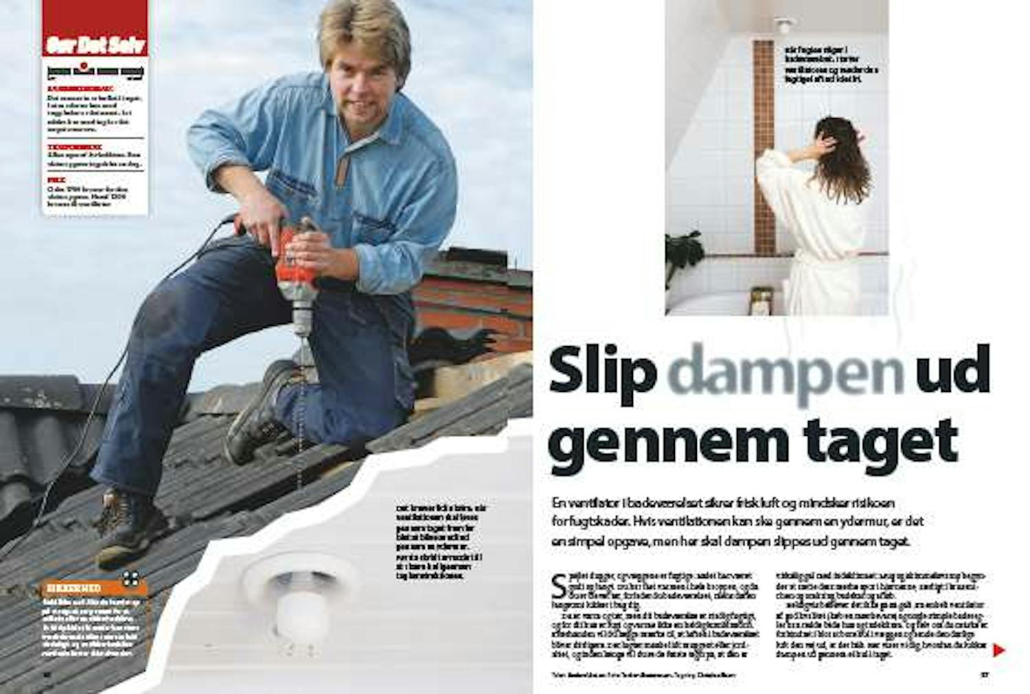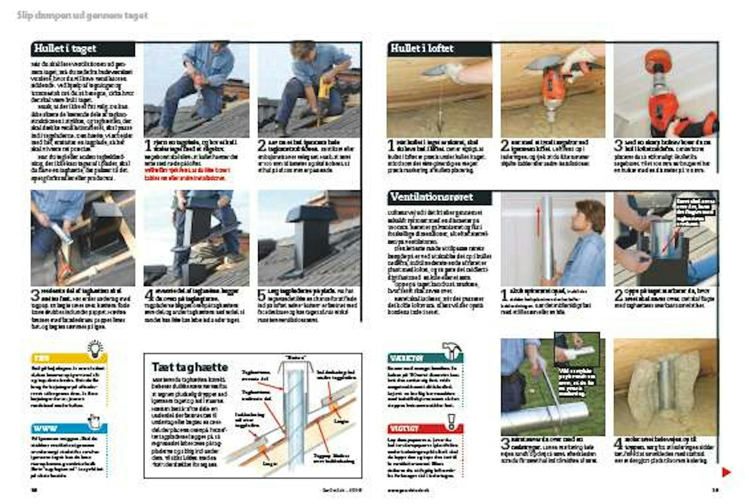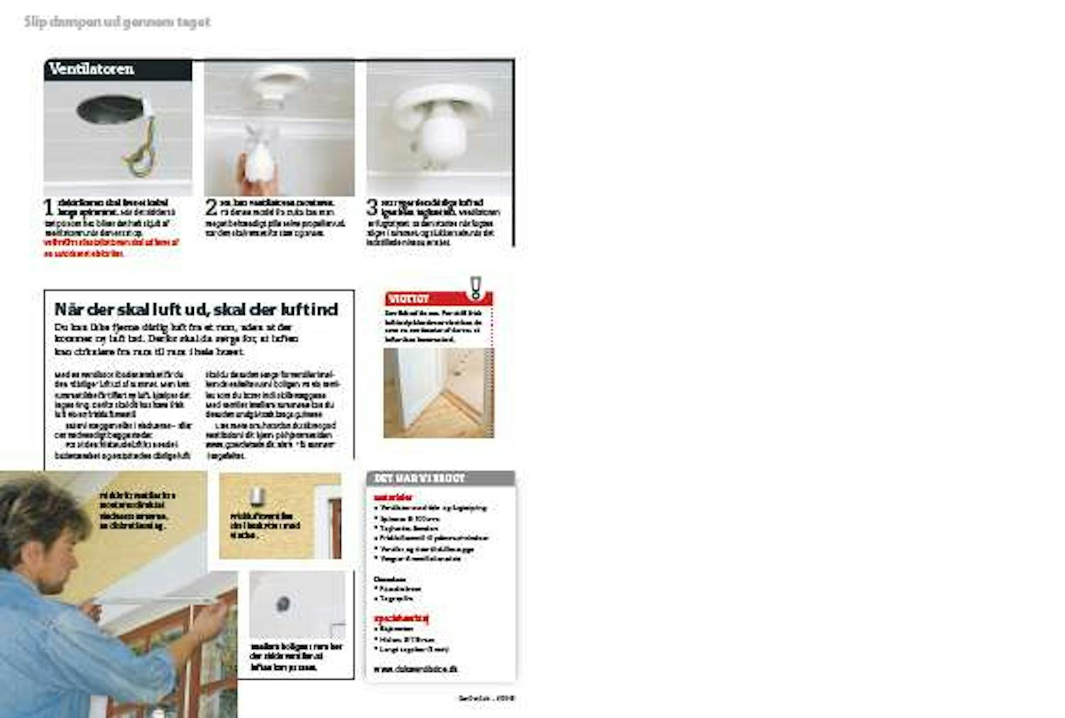 Når du skal føre ventilationen ud gennem taget, må du nede fra badeværelset vurdere, hvor du vil have ventilatoren siddende. Ved hjælp af tegninger og tommestok må du så beregne, cirka hvor der skal være hul i taget.