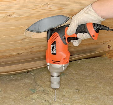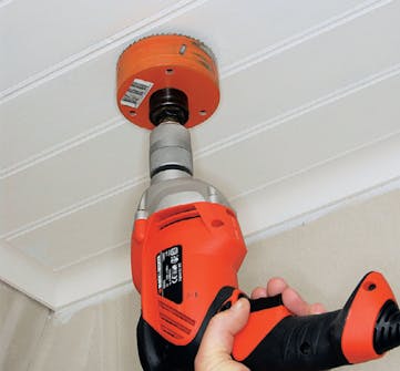 Fjern en tagplade, og bor et hul i undertaget med et søgebor. Søgeboret skal sikre, at hullet havner det rette sted nede på loftet.