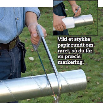 Røret saver du over med en nedstryger. Lav en markering hele vejen rundt, og drej så røret, efterhånden som du får savet hul ind til midten af røret.