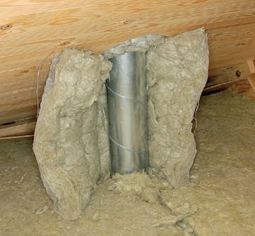Røret skal isoleres, når det passerer det kolde loftsrum. Ellers vil der opstå kondens inde i røret.