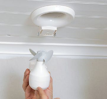 Nu kan ventilatoren monteres. På denne model fra Duka kan man meget behændigt pille selve propellen ud, når den skal renses for støv og snavs.
