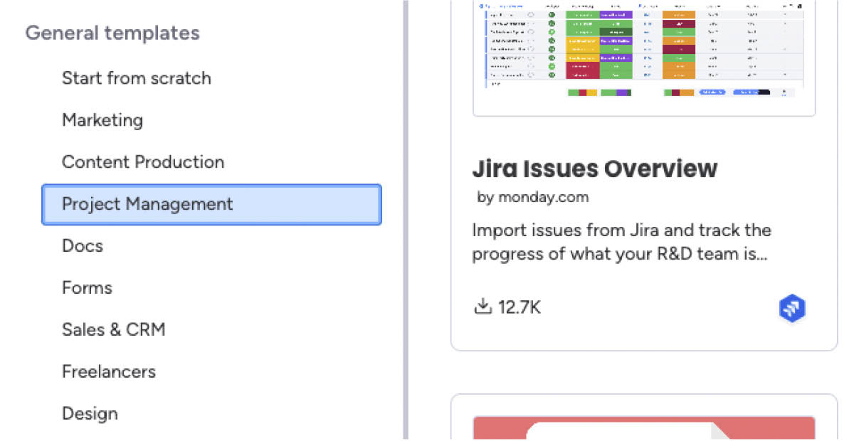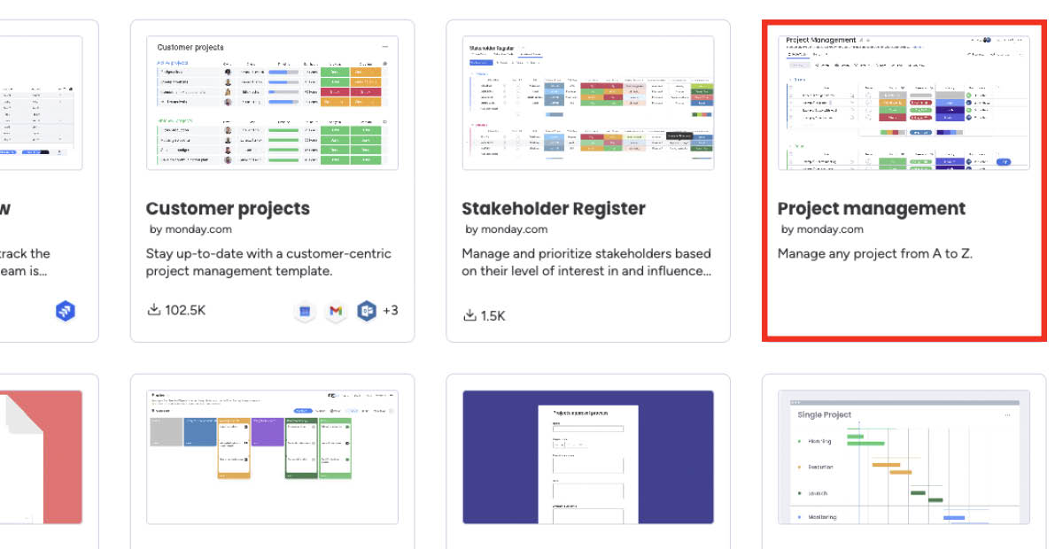 I Monday kan du vælge skabeloner, som du kan arbejde tilpasse til dit byggeprojekt.
