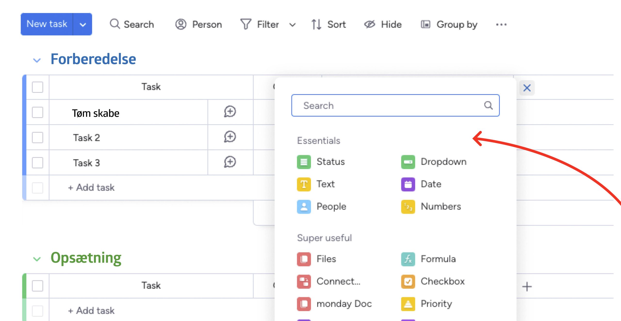 Der er mange forskellige menuer og muligheder, når du arbejder i Monday. Her viser vi dig de vigtigste, så du kan komme godt i gang.
