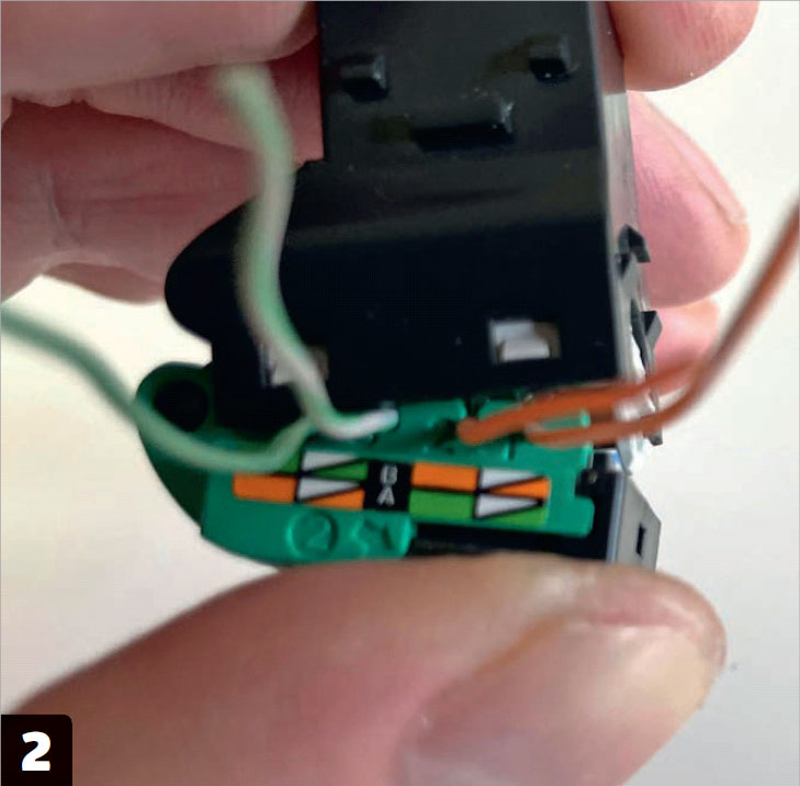 Saml stikket ved at klemme den bagerste del tilbage på plads. Overskydende ledning klippes af med en bidetang.