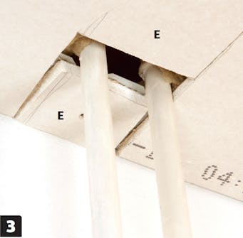 Montér et groft tilskåret stykke gips bag radiatorrørene. Sørg for at holde luft omkring dem, så rør og plader ikke gnider mod hinanden.