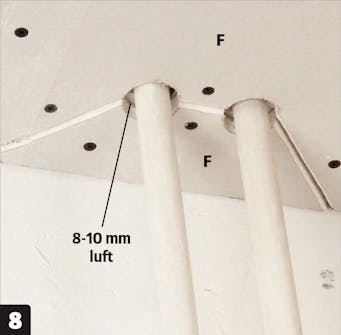 Til sidst sikrer en lufttæt elastisk fuge langs loftets kant, at luftbåren lyd ikke kan finde vej ned oppefra.