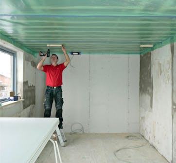 Så begynder det at blive sjovt, for nu skal du lave det, der kan ses. Men tag ikke fejl. Det er forarbejdet, der gør, at du nu kan skabe et plant, lige loft.