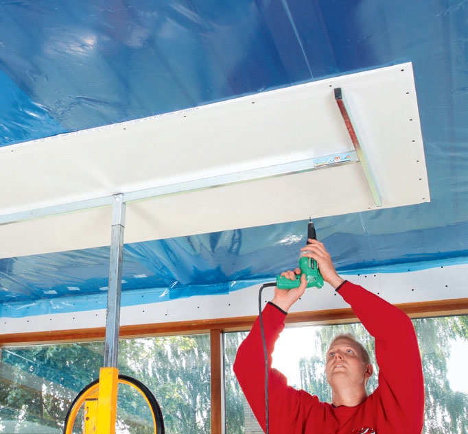 Når du skal sætte gipsplader op, er det en rigtig god idé at benytte en gipspladehejs, der holder pladen, mens du skruer den fast. Hvis du skal lave loftet alene, er den uundværlig.