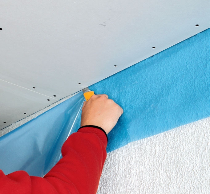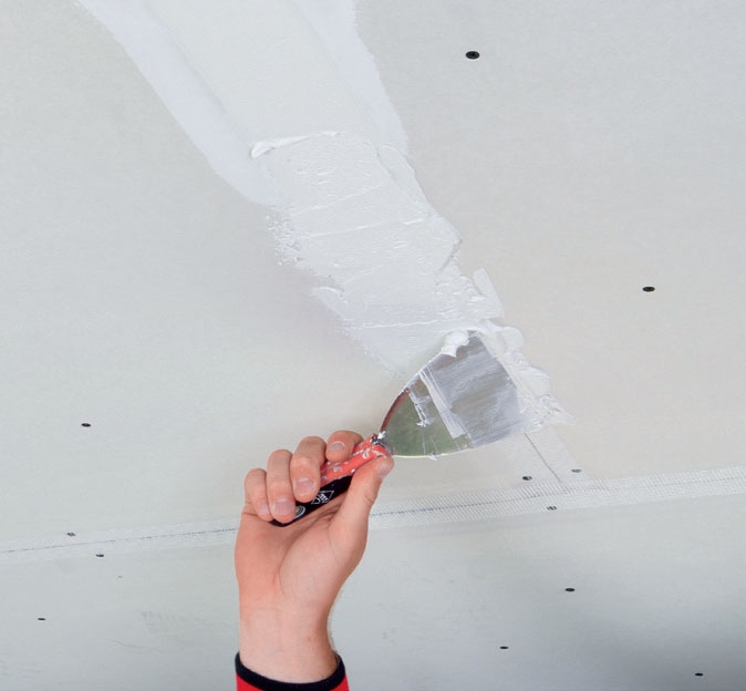 Nu er den grove del af arbejdet lavet - nu skal du i gang med finpudsningen af gipsloftet: fugning rundt i kanten, grunding, montering af armeringstape, spartling, slibning og maling.