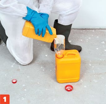 Hæld indholdet fra den lille beholder over i den store primerbeholder. Skru låget på, og ryst beholderen i mindst et minut, så de to væsker bliver blandet godt.